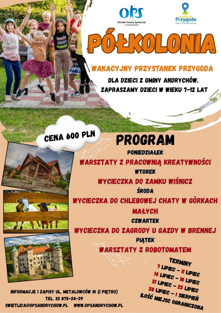Zapraszamy dzieci z terenu Gminy Andrychów w wieku szkolnym od 7 do 12 lat do udziału w półkolonii.